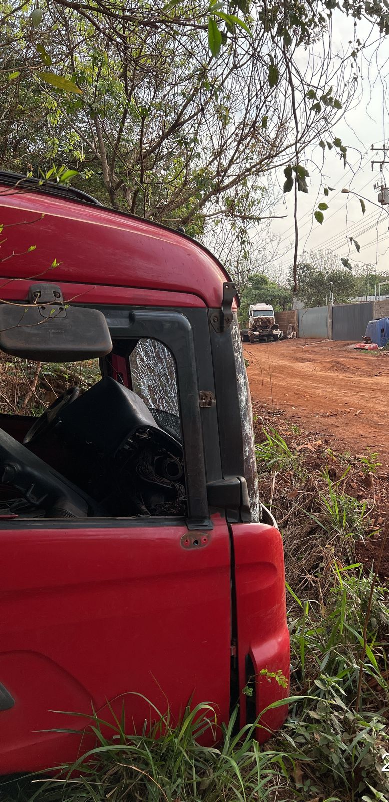 Os sinais identificadores estavam todos apagados, incluindo numeração nos vidros e na barra da porta. No decorrer da apuração, a equipe conseguiu localizar testemunhas e outros elementos informativos que apontaram para dois responsáveis por terem tentado dispensar as partes do caminhão naquele local.