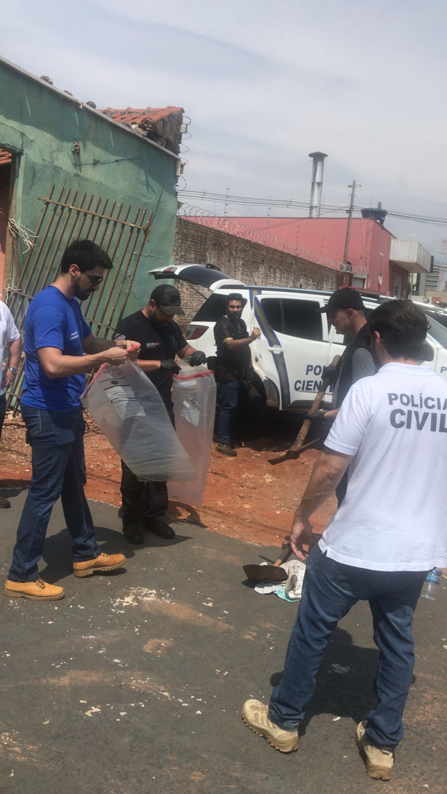 Durante a simulação, os investigadores apreenderam uma picareta e uma pá que teriam sido utilizadas em um dos homicídios. Os objetos, que continham vestígios de sangue, serão agora periciados para confronto genético.