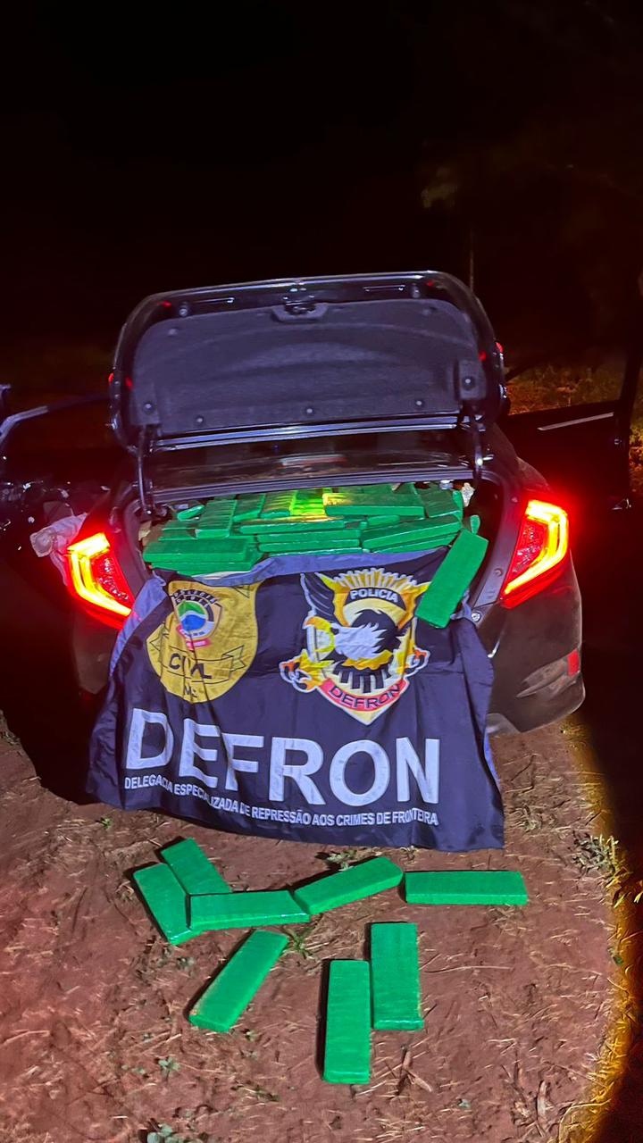 Os policiais iniciaram acompanhamento do veículo, que na rua Vicente Lopes Azambuja, na área urbana de ITAHUM, foi abandonado pelos ocupantes que fugiram a pé. Os agentes iniciaram buscas na mata próxima ao local e localizaram um homem de 28 anos e após realizarem buscas e consultas no veículo encontraram grande quantidade de entorpecente e constataram adulteração e registro de roubo, no estado de São Paulo.