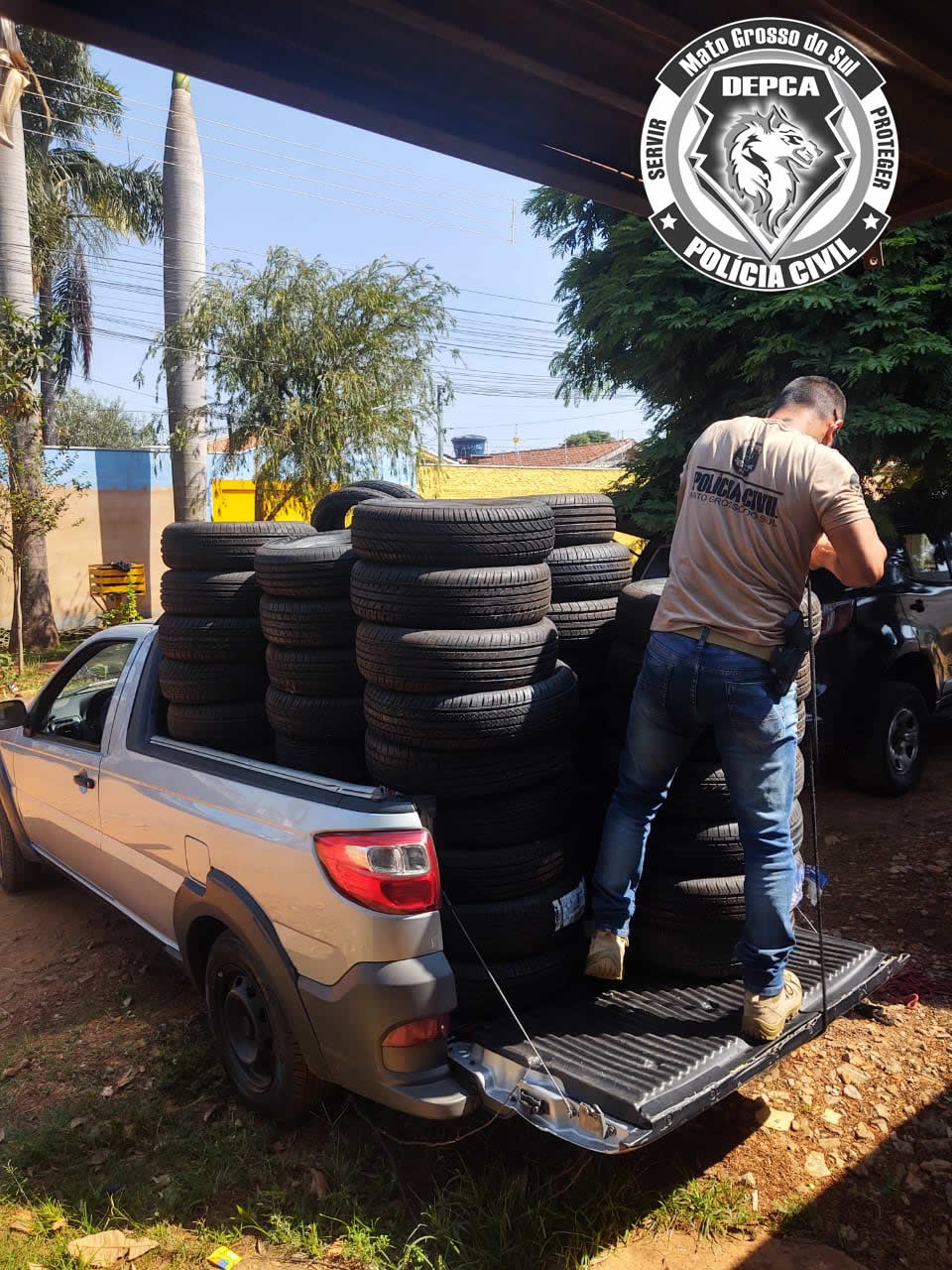 Ao chegarem na residência alvo, os investigadores constataram que o suspeito utilizava o imóvel para estocar pneus contrabandeados, possivelmente do Paraguai, tendo em vista que foram localizadas cerca de 60 unidades de pneus novos de automóveis e motocicletas, sem origem comprovada, que foram apreendidos e encaminhados para a 6ªDP.