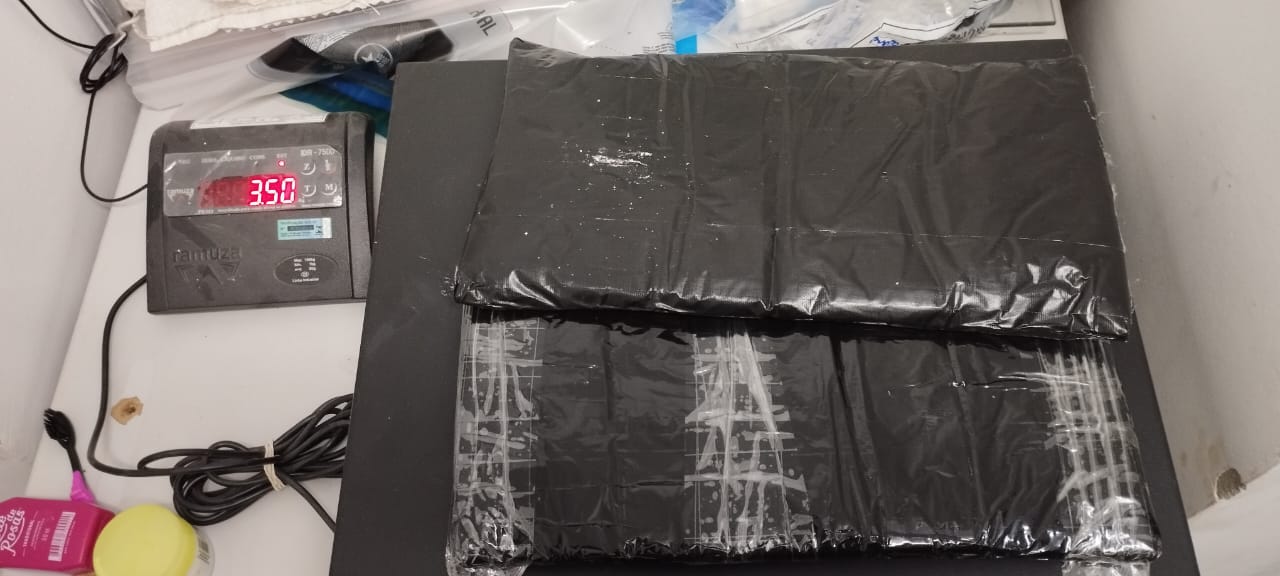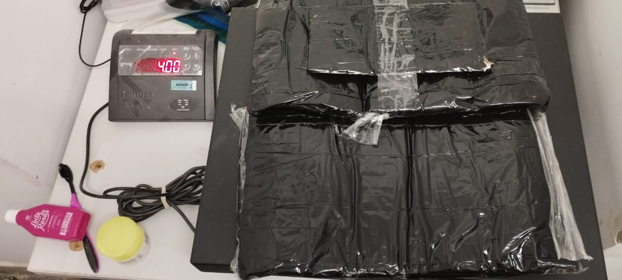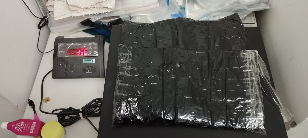 Com o homem de 38 anos foram encontrados 3,5kg de cocaína, com a mulher de 25 anos, 3,5kg de cocaína e com a menor de 18 anos, 4kg de cocaína. A adolescente infratora foi entregue ao Conselho Tutelar do município de Miranda.