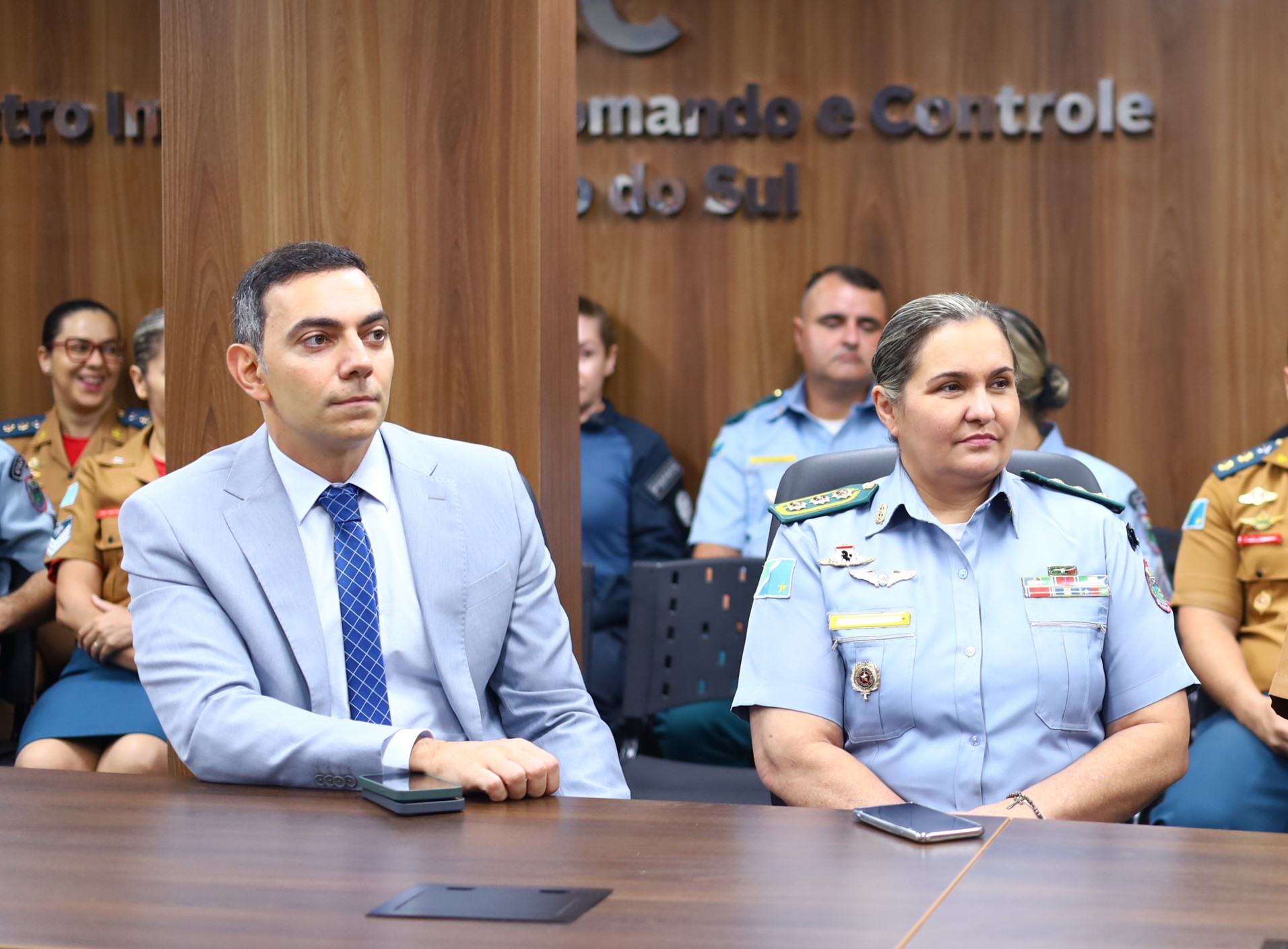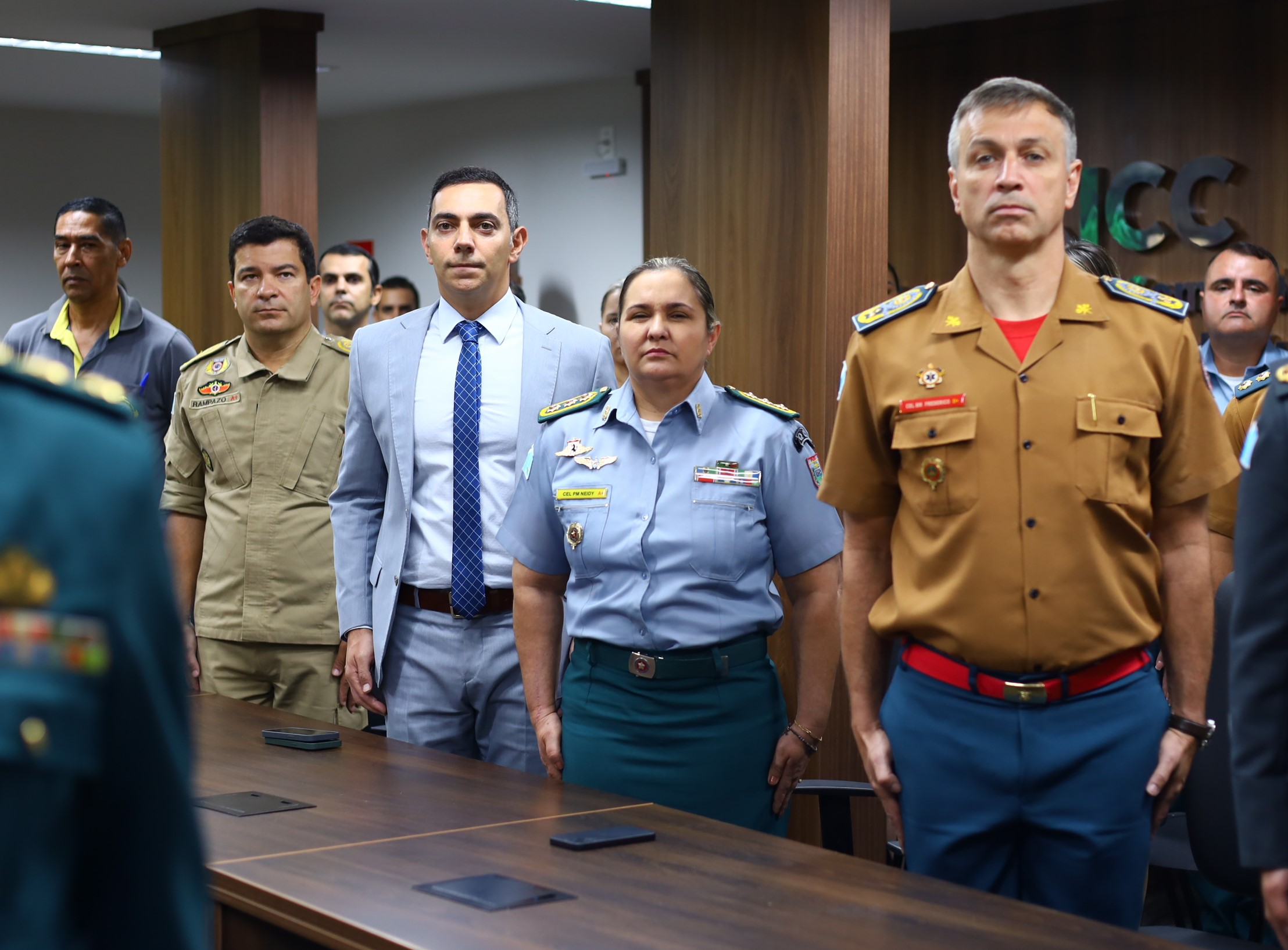 Nesta segunda-feira (23), o Delegado-Geral de Polícia Civil do Mato Grosso do Sul, Roberto Gurgel Oliveira Filho, esteve presente em uma solenidade de troca da Diretoria-Geral do Centro Integrado de Operações de Segurança (CIOPS), realizada no prédio do Comando-Geral da Polícia Civil em Campo Grande. Na gestão anterior, o CIOPS era dirigido pelo Coronel PM Juraci Pereira da Paz e a partir de hoje será dirigido pelo Coronel BM Danilo Santos Moreira Leite.
