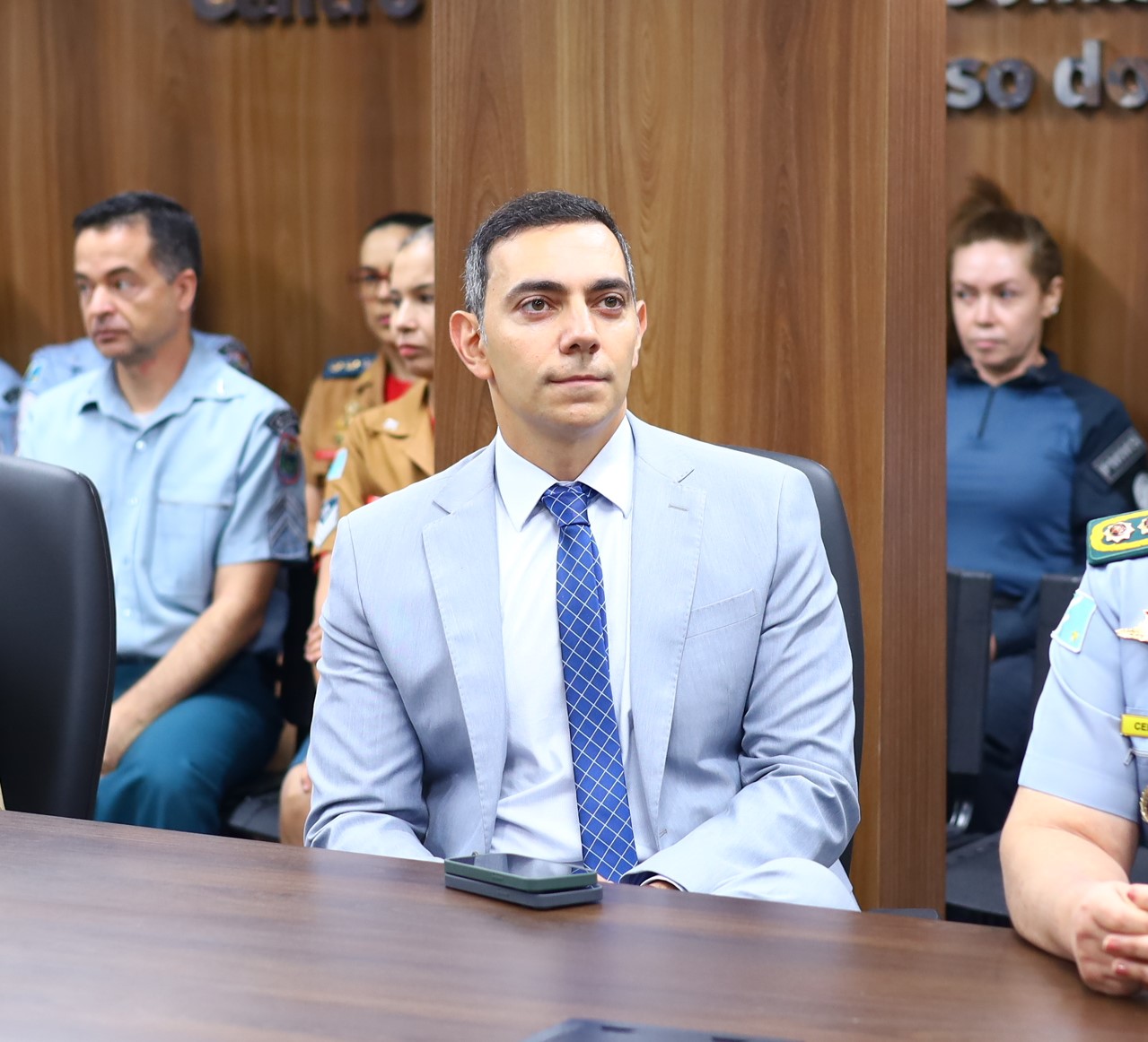 Dentre as autoridades civis e militares presentes, estava o Secretário de Justiça e Segurança Pública, Antônio Carlos Videira.