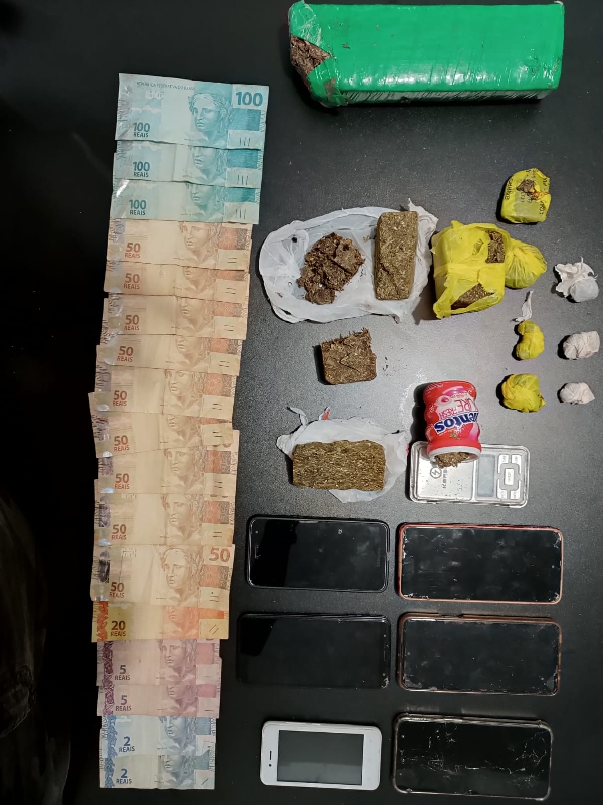 Durante a ação, foi apreendido mais de 1kg de substância análoga à maconha, juntamente com uma balança de precisão. No total, sete indivíduos foram conduzidos à Delegacia para fins de apuração, sendo que quatro deles foram autuados em flagrante delito, enquanto os outros três foram liberados, mas permanecem sob investigação no âmbito do inquérito policial, que irá apurar eventual envolvimento deles com a associação.