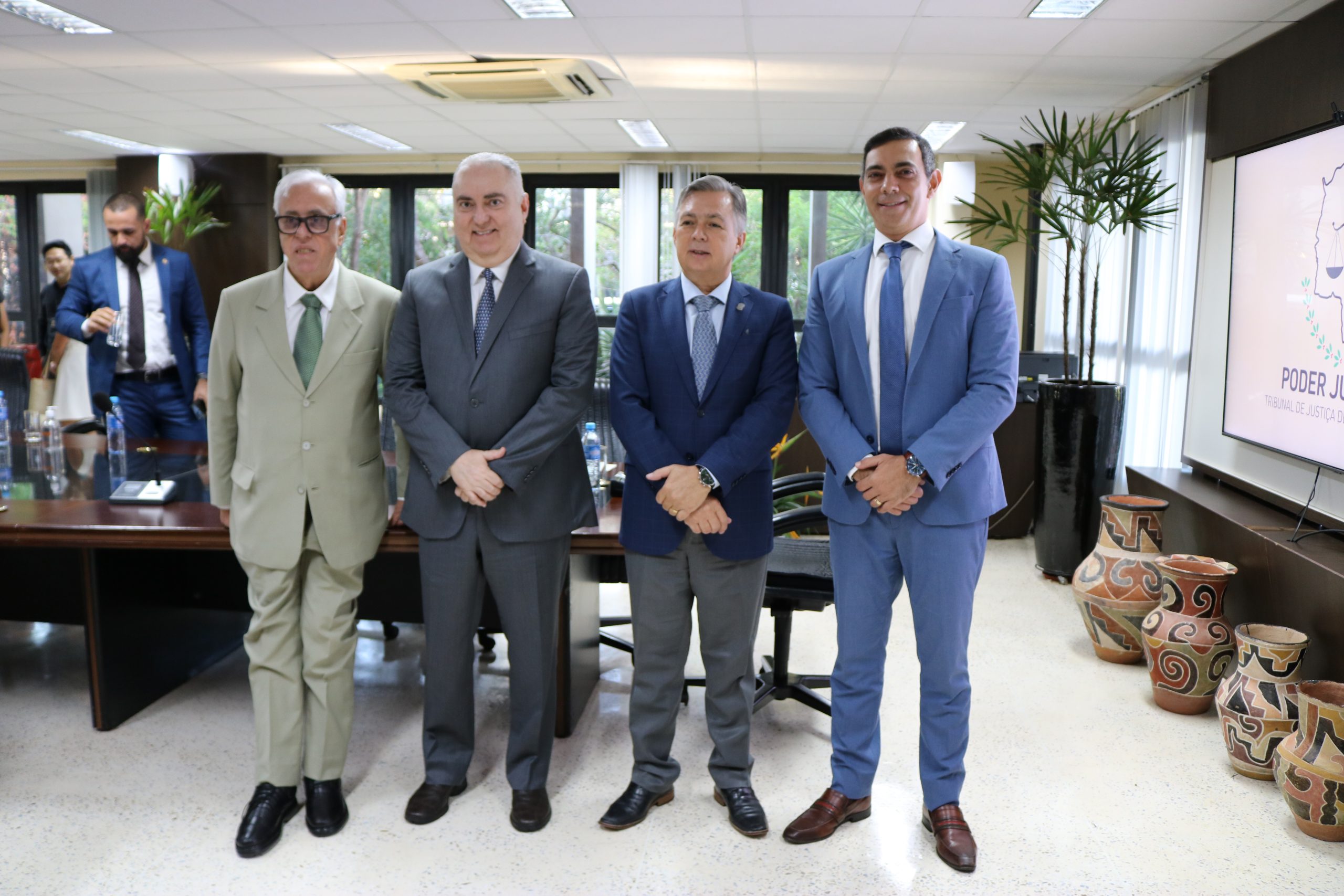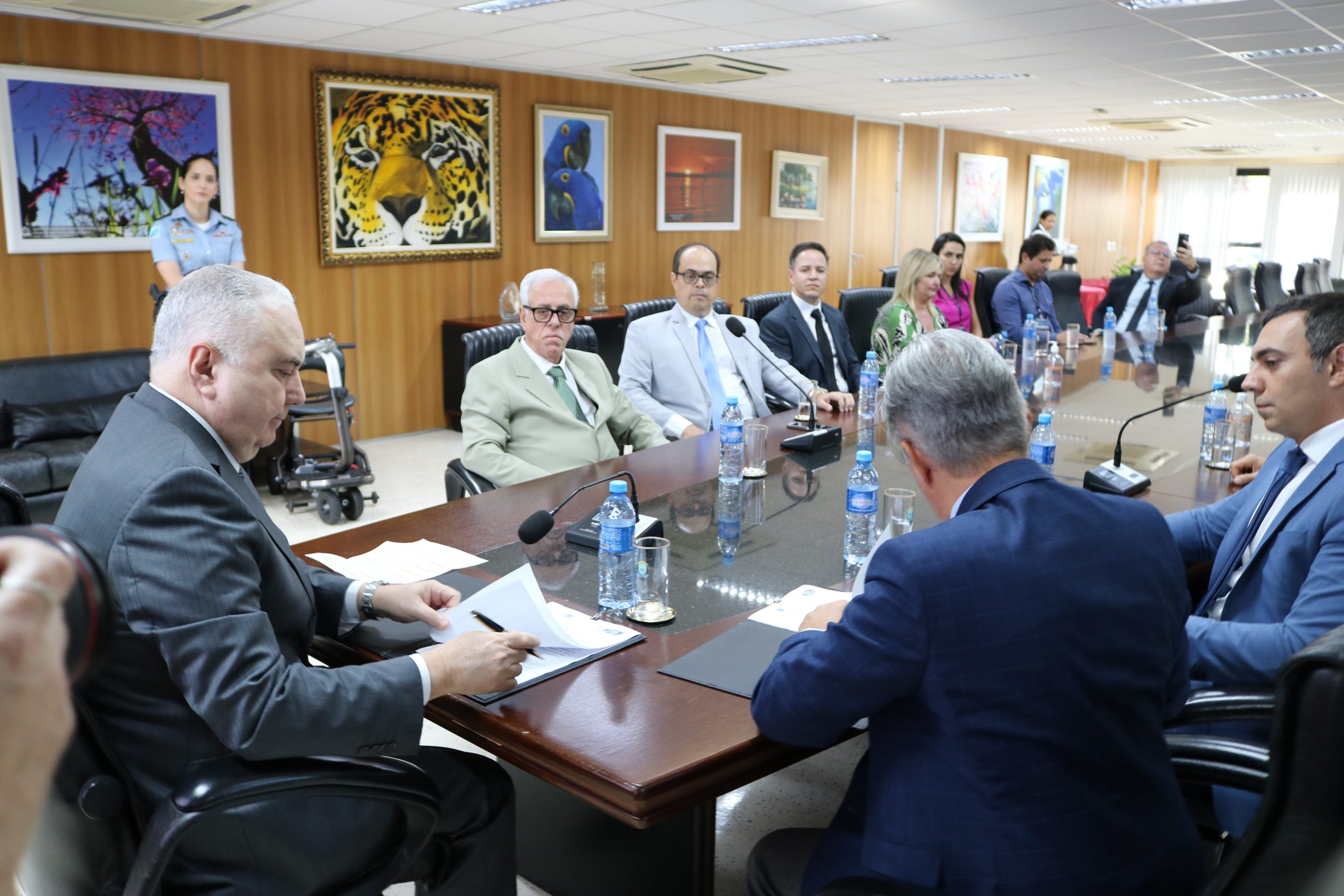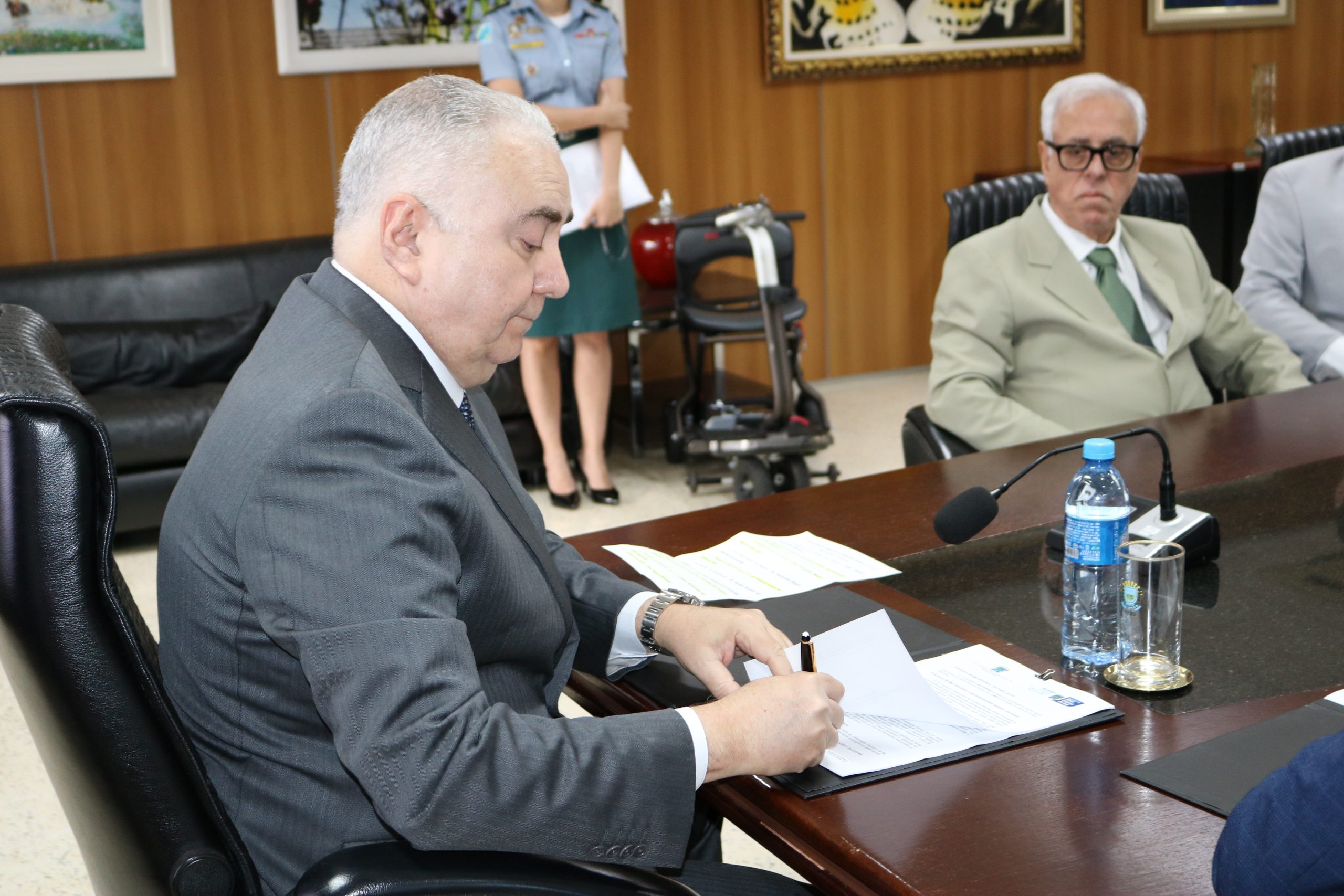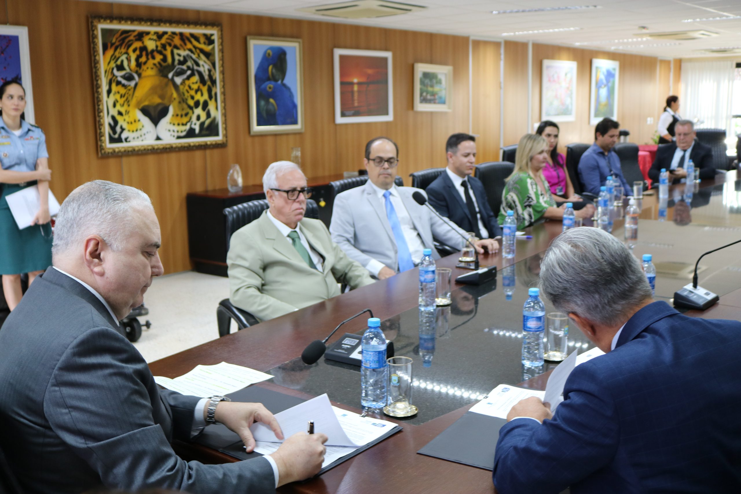 O Delegado-Geral da Polícia Civil, Roberto Gurgel de Oliveira Filho, participou nesta sexta-feira, 01/12, da assinatura do termo de cooperação entre a Secretaria de Justiça e Segurança Pública e o Tribunal de Justiça de Mato Grosso do Sul (TJMS), que estabelece normas de transição e implementação do envio digital de procedimentos investigativos, para o Poder Judiciário. A solenidade aconteceu no final da tarde, na sala de reunião “Pantanal”, no prédio do TJMS e contou com a presença de diversas autoridades.