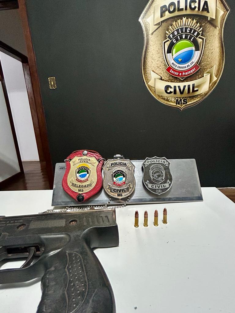 Na tarde desta segunda-feira, 04/12, a Polícia Civil, por intermédio da Delegacia de Caarapó, prendeu em flagrante M.V. (46 anos de idade) por portar ilegalmente arma de fogo de uso restrito, o mesmo instrumento que utilizou para ameaçar e conseguir estuprar uma sobrinha dele no final do mês de novembro do ano corrente. Na ocasião, durante a madrugada do dia 21/11, M.V. acordou a sobrinha forçando-a a manter relação sexual sob a grave ameaça de matá-la caso resistisse à ação, mostrando-lhe uma arma de fogo modificada para o calibre .22.