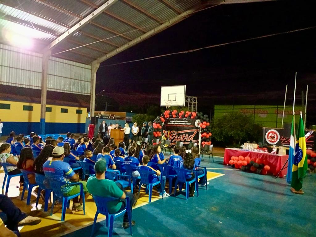 A Polícia Civil, por intermédio do Delegado Titular de Guia Lopes Da Laguna, Dr. Gustavo Detomi, participou da formatura do Programa Educacional de Resistência às Drogas (PROERD), realizado na noite da última terça-feira (05/12). Na ocasião, foram entregues os certificados de conclusão de curso aos alunos do 5º ano do Ensino Fundamental, bem como medalhas de Honra ao Mérito aos estudantes que se destacaram no PROERD, valorizando a aproximação entre a sociedade, a família e o Estado na proteção integral das crianças e adolescentes.