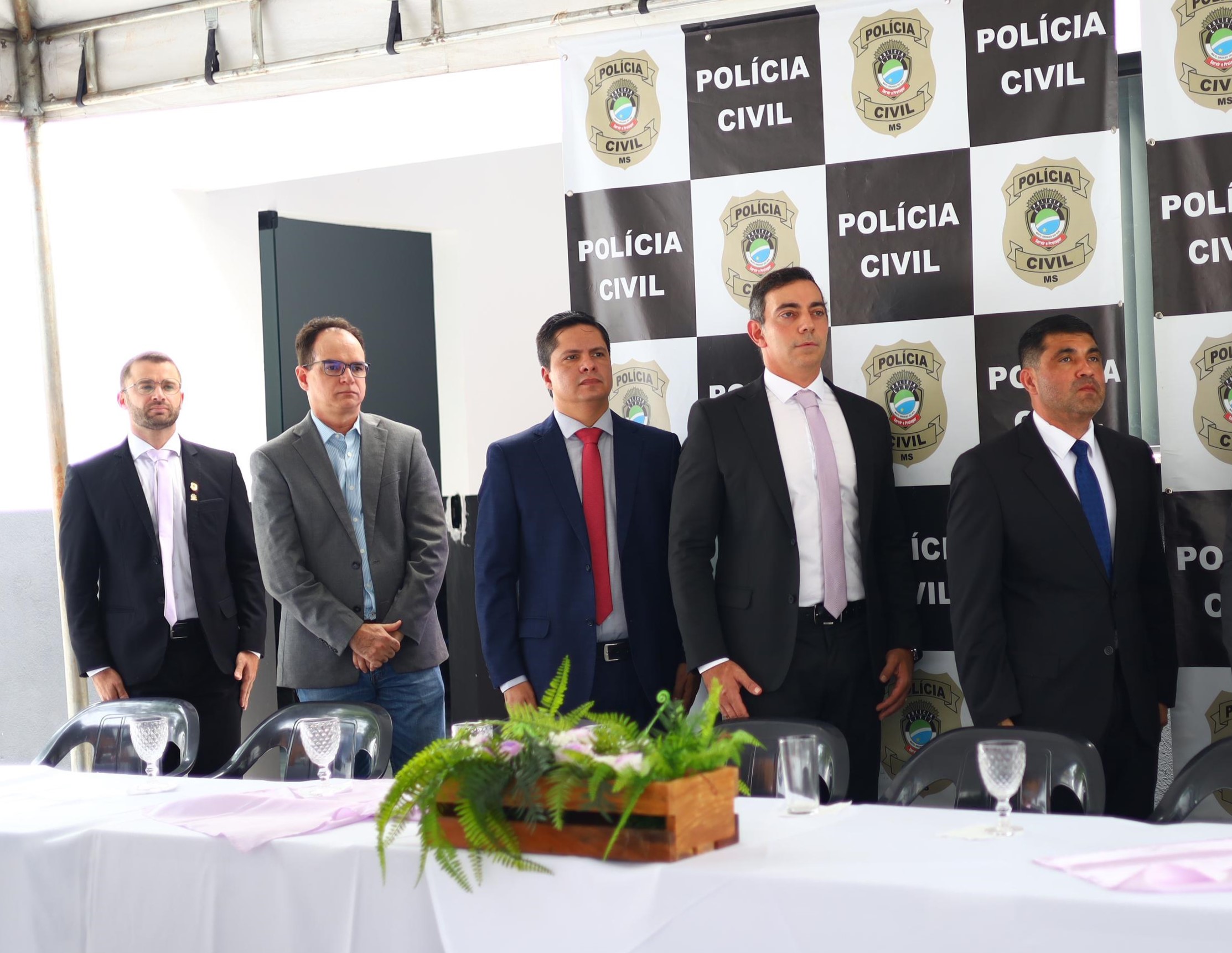 Além do Delegado-Geral e do Delegado Titular Dois Irmãos, participaram da solenidade, o Secretário Executivo de Segurança Pública do Mato Grosso do Sul – Coronel Wagner Ferreira da Silva, Fabiano Góes Nagata – Coordenador do Departamento de Polícia do Interior, a Assessora de Projetos – Delegada Christiane Grossi, o Delegado Regional de Aquidauana – Amylcar Eduardo Paracatu Romero, o Prefeito- Waldemir de Souza Volk (Japão), o Vice-Prefeito – Eder Aguiar.