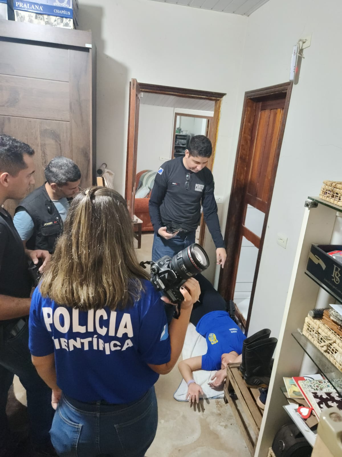 A reprodução foi realizada para testar hipóteses de dinâmica dos fatos, já que o suspeito, preso no dia 21 de novembro de 2023, permaneceu em silêncio durante o interrogatório e não houve testemunhas visuais dos fatos. Ainda, foi cumprido um mandado de busca e apreensão no local dos fatos, para identificação de outros elementos probatórios, tendo sido localizado, entre outros objetos, um revólver, calibre 22.