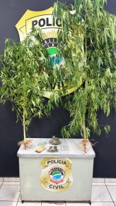 Na cozinha da residência, foi localizada uma vasilha plástica contendo mais uma porção de substância análoga a maconha, também preparada para venda, pesando 9,1 gramas, além dinheiro em notas trocadas e mais 28 saquinhos zip pequenos, idênticos aos usados para embalar as drogas que foram apreendidas, entre outros petrechos usados na traficância. Por fim, no fundo do quintal da residência, foram encontrados e arrecadados dois pés de planta do tipo de cannabis sativa, que estavam sendo cultivados naquele local.