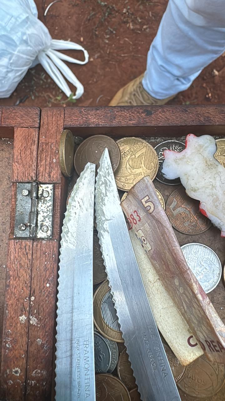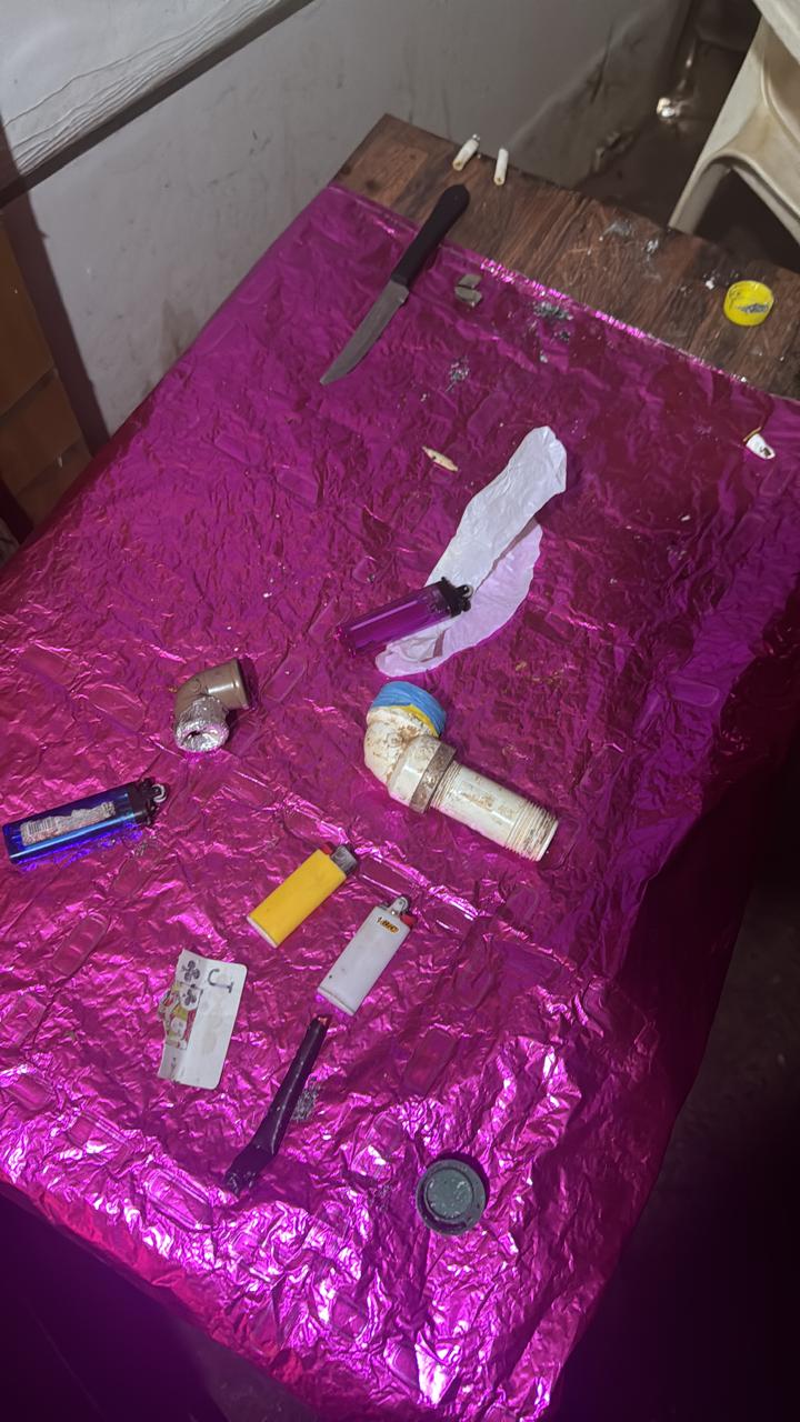Foram apreendidos uma pedra de pasta-base de cocaína, além de facas utilizadas para fracionar a droga. Os autores foram conduzidos em flagrante para a DENAR.