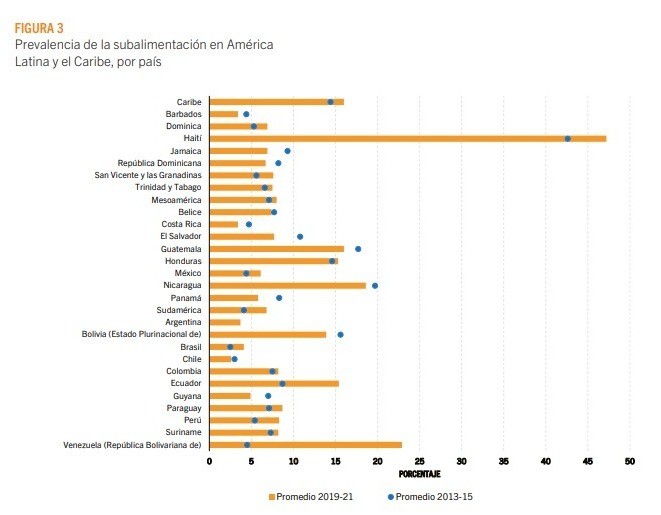 Conforme o estudo, a Venezuela é a que mais tem pessoas passando fome na América do Sul. A pesquisa deu conta de pouco mais de 20% da população nesse Estado. A porcentagem diz respeito a 6,5 milhões de pessoas.