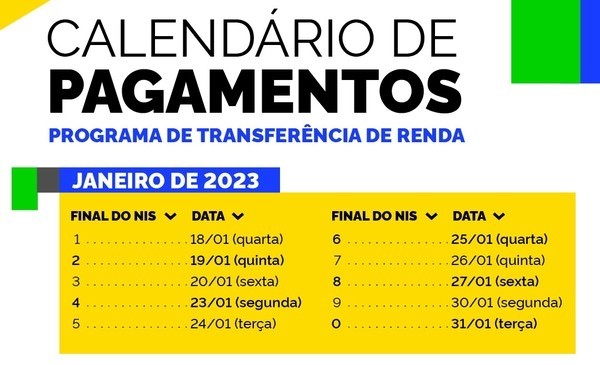 Esta semana, vão receber o pagamento os beneficiários com NIS de final 4, 5, 6, 7 e 8. O calendário de pagamentos do Bolsa Família de janeiro teve início dia 18 e vai até o dia 31 - veja as datas e quem recebe abaixo.