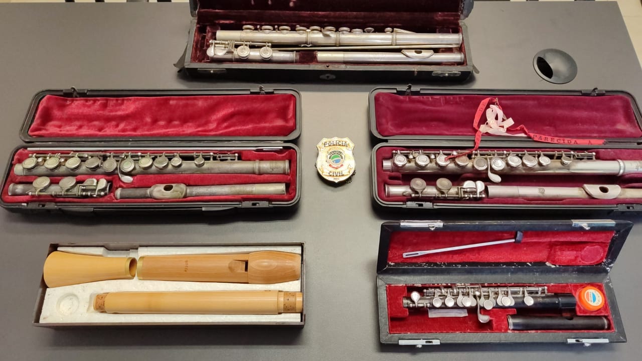 Na noite de ontem, 03 de abril de 2025, por volta das 21h, a Polícia Civil de Mato Grosso do Sul, por meio da 5ª Delegacia de Polícia de Campo Grande, recuperou instrumentos musicais furtados no último dia 30 de março, no bairro Jockey Clube, na Capital.