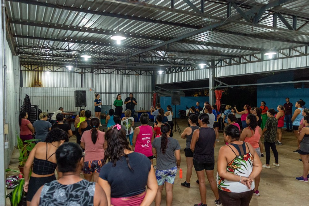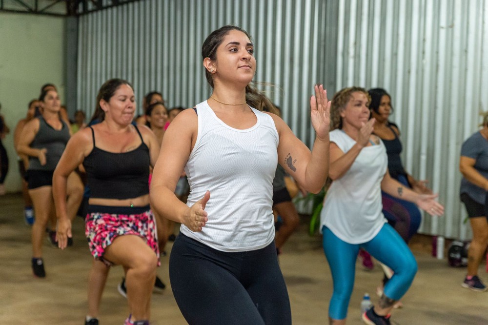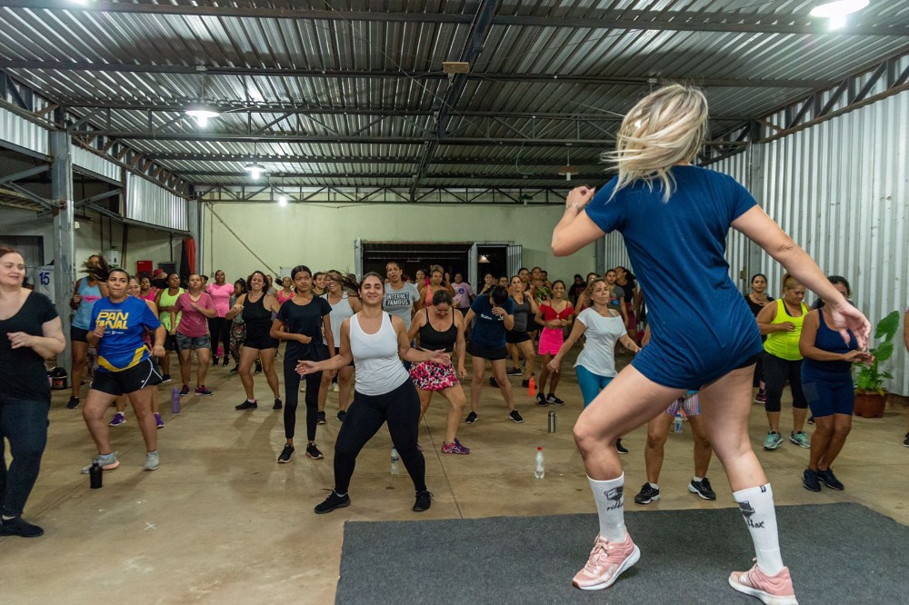 Preocupada com o bem-estar social das mulheres, a prefeita de Campo Grande Adriane Lopes esteve presente em mais uma aula de Rit Box do Treina MS para oferecer apoio às 140 mulheres que participam do Projeto de Emagrecimento, criado pela coach Jéssica Santana.
