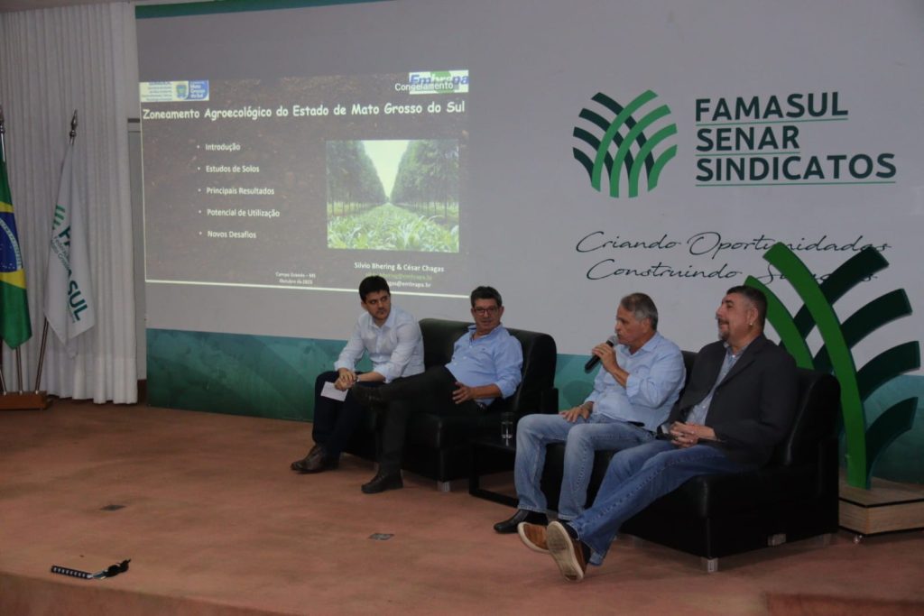 A reunião, realizada no auditório da Famasul, em Campo Grande, contou com a presença do secretário-executivo de Desenvolvimento Econômico Sustentável, Rogério Beretta, da equipe técnica da coordenação de Agricultura e Meio Ambiente da Semadesc, do diretor-presidente da Agraer, Fernando Nascimento, do superintende do Senar-MS Lucas Galvan, e da chefe de Pesquisa da Embrapa Solos, Cláudia Pozzi Jantalia.