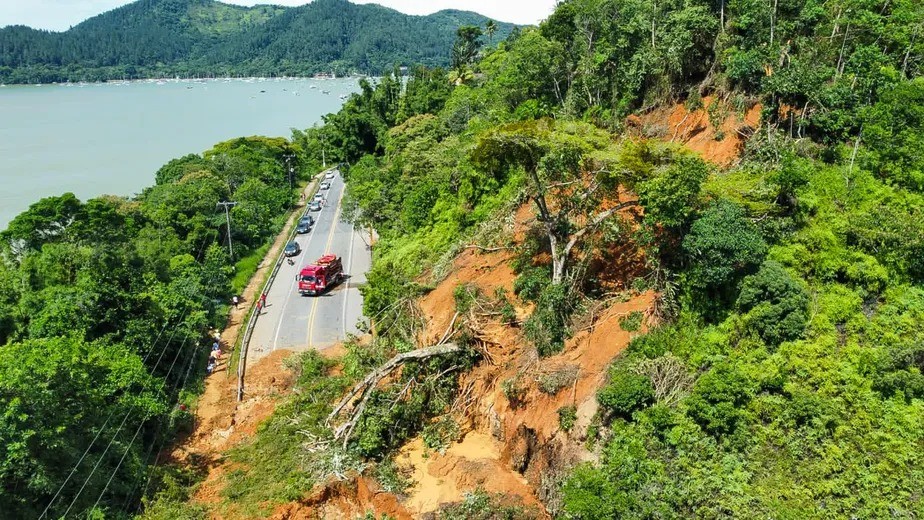 O Departamento de Estradas e Rodagem (DER) liberou parcialmente o tráfego em diversos pontos que estavam totalmente obstruídos na rodovia Rio-Santos (SP-055), no trecho entre São Sebastião e Ubatuba.