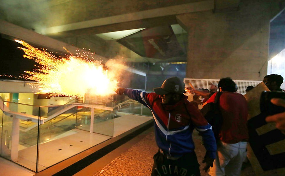 Durante o ato, alguns terroristas cometeram atos de vandalismo, queimando fotos do presidente do BC e do ex-presidente Jair Bolsonaro. O ato foi organizado pela CUT.