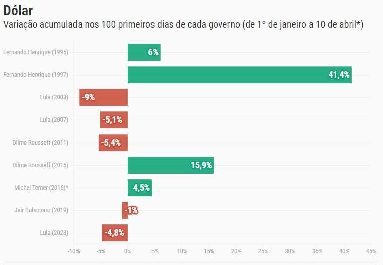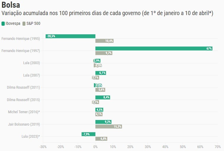Os dados foram levantados pela plataforma de investimentos TradeMap a pedido da CNN, considerando o desempenho nos 100 primeiros dias de todos os presidentes desde o início do Plano Real, em 1994.