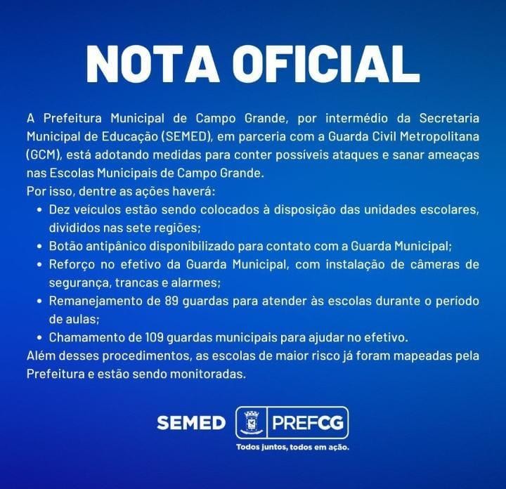 Para tranquilizar alunos, pais e servidores, a prefeita Adriane Lopes, acompanhada do secretário municipal de Educação Lucas Henrique Bitencourt e o secretário Especial de Segurança Anderson Gonzaga, afirmou que, de imediato, 23 escolas apontadas pelo mapeamento com maior risco, terão efetivo da GCM durante o turno escolar.