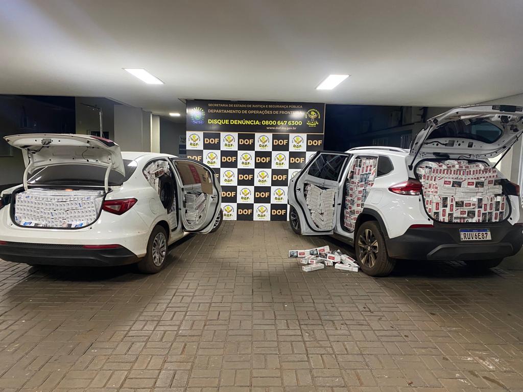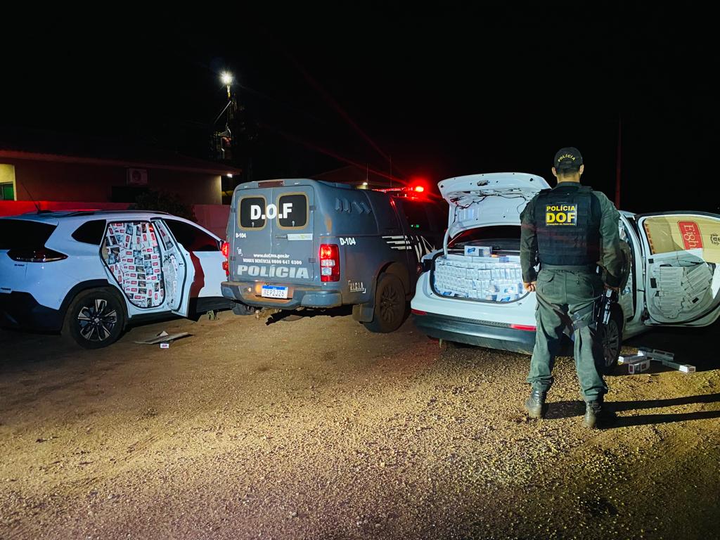 Um GM/Tracker com queixa de roubo no mês passado na cidade de São Paulo (SP) e um Fiat/Cronos com registro de apropriação indébita também na capital paulista em 2022 foram apreendidos pelo DOF (Departamento de Operações de Fronteira) com cinco mil pacotes de cigarros e 50 quilos de defensivos agrícolas contrabandeados do Paraguai. A ação aconteceu nesta quinta-feira (13/04), na MS-164 zona rural de Maracaju.