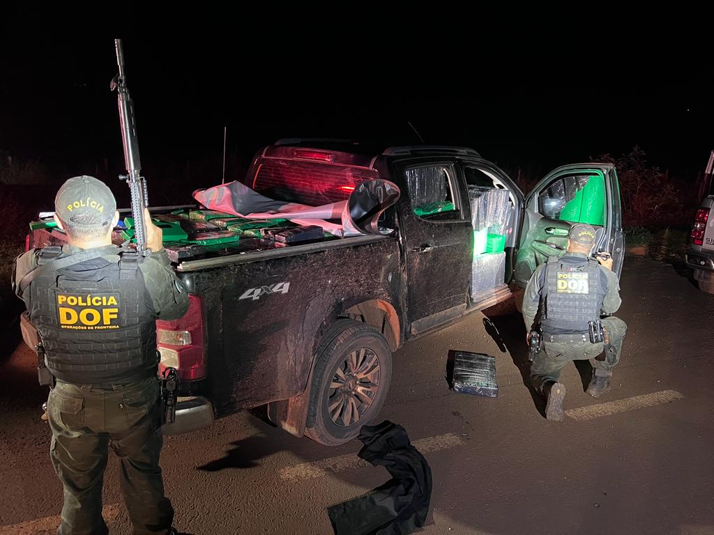 Policiais militares do DOF (Departamento de Operações de Fronteira) apreenderam na madrugada deste sábado (15/04), na MS-295, zona rural de Tacuru mais de 3,6 toneladas de maconha que eram transportadas em duas camionetas GM/S-10 roubadas no estado do Paraná. Um terceiro veículo que era usado na função de batedor foi apreendido.