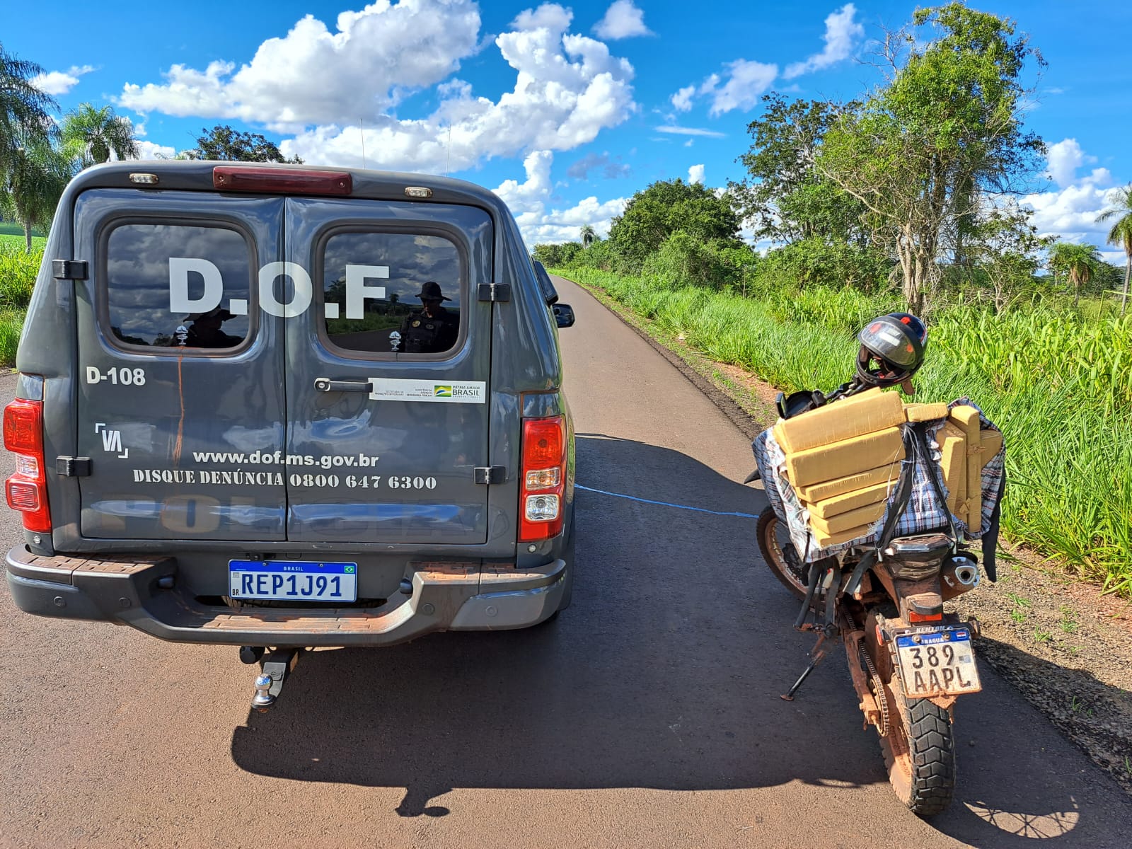 Os militares seguiam em um patrulhamento ostensivo pela rodovia MS-178 quando visualizaram o motociclista que seguia no sentido contrário. Ao perceber que seria abordado, o homem abandonou a motocicleta no acostamento e tentou fugir a pé, mas foi alcançado e detido.