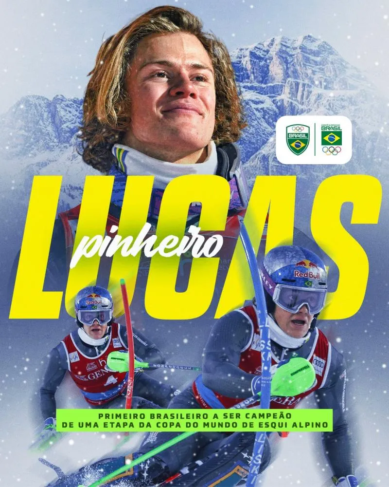 Brasileiro Lucas Braathen faz história e vence prova de esqui alpino na Copa do Mundo pela primeira vez